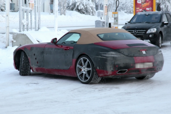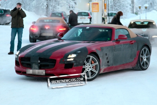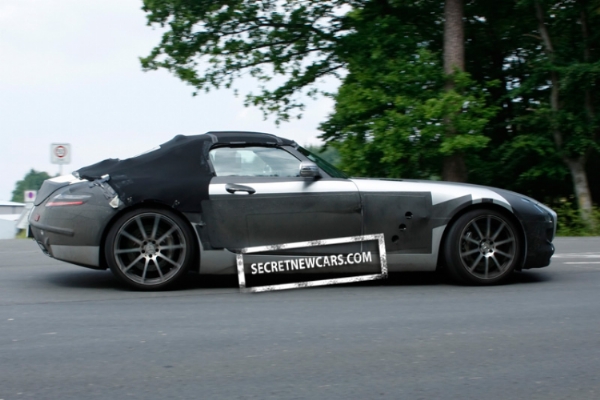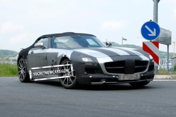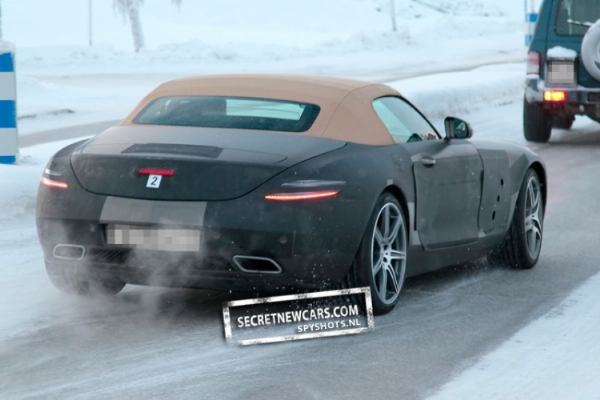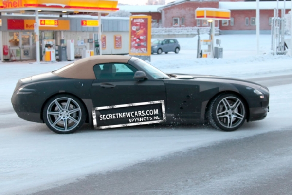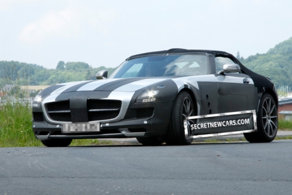 Die Cabrio-Version des SLS AMG unterläuft die letzten Tests und soll nächstes Jahr in die Serienfertigung gehen. Anders als beim Coupé werden wahrscheinlich keine Flügeltüren verbaut.